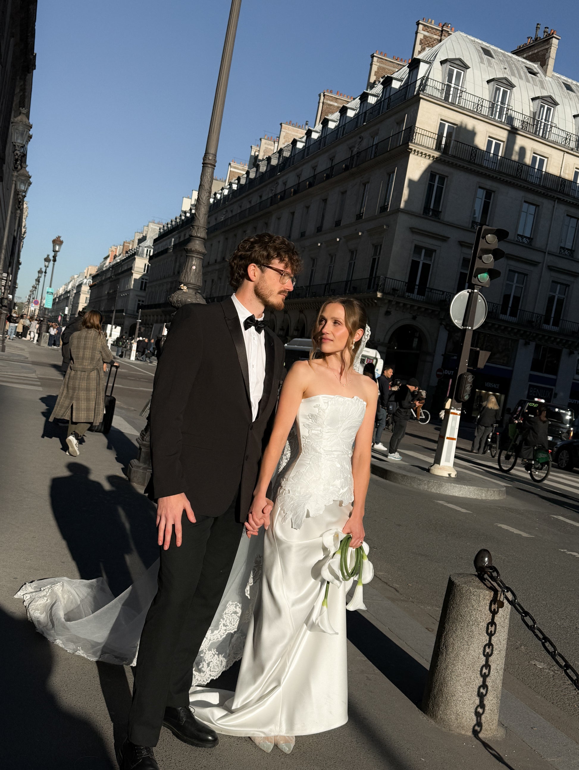 FLEUR features an over the hip corset shape with an eyelet corset back. Floral embroidered satin is hand sewn to the front of the bodice, draping down into the skirt. Featuring steel boning throughout and a gorgeously soft lining, FLEUR is a modern Bride’s dream🕊️